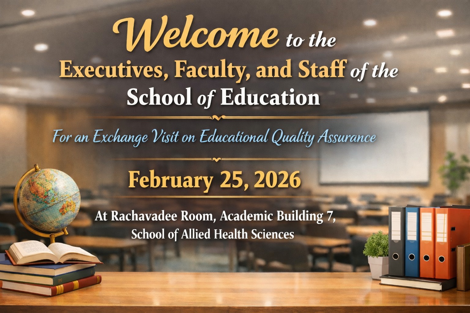 เมื่อวันอังคารที่ 25 กุมภาพันธ์ 2569 เวลา 13.30–16.30 น. ณ ห้องประชุมราชาวดี อาคารวิชาการ 7 สำนักวิชาสหเวชศาสตร์ มหาวิทยาลัยวลัยลักษณ์ ให้การต้อนรับคณะผู้บริหารและบุคลากรจากสำนักวิชาศึกษาศาสตร์ ในโอกาสเดินทางมาเยี่ยมเยียน แลกเปลี่ยนเรียนรู้ และศึกษาดูงานด้านระบบการบริหารจัดการสำนักวิชาและการประกันคุณภาพการศึกษา