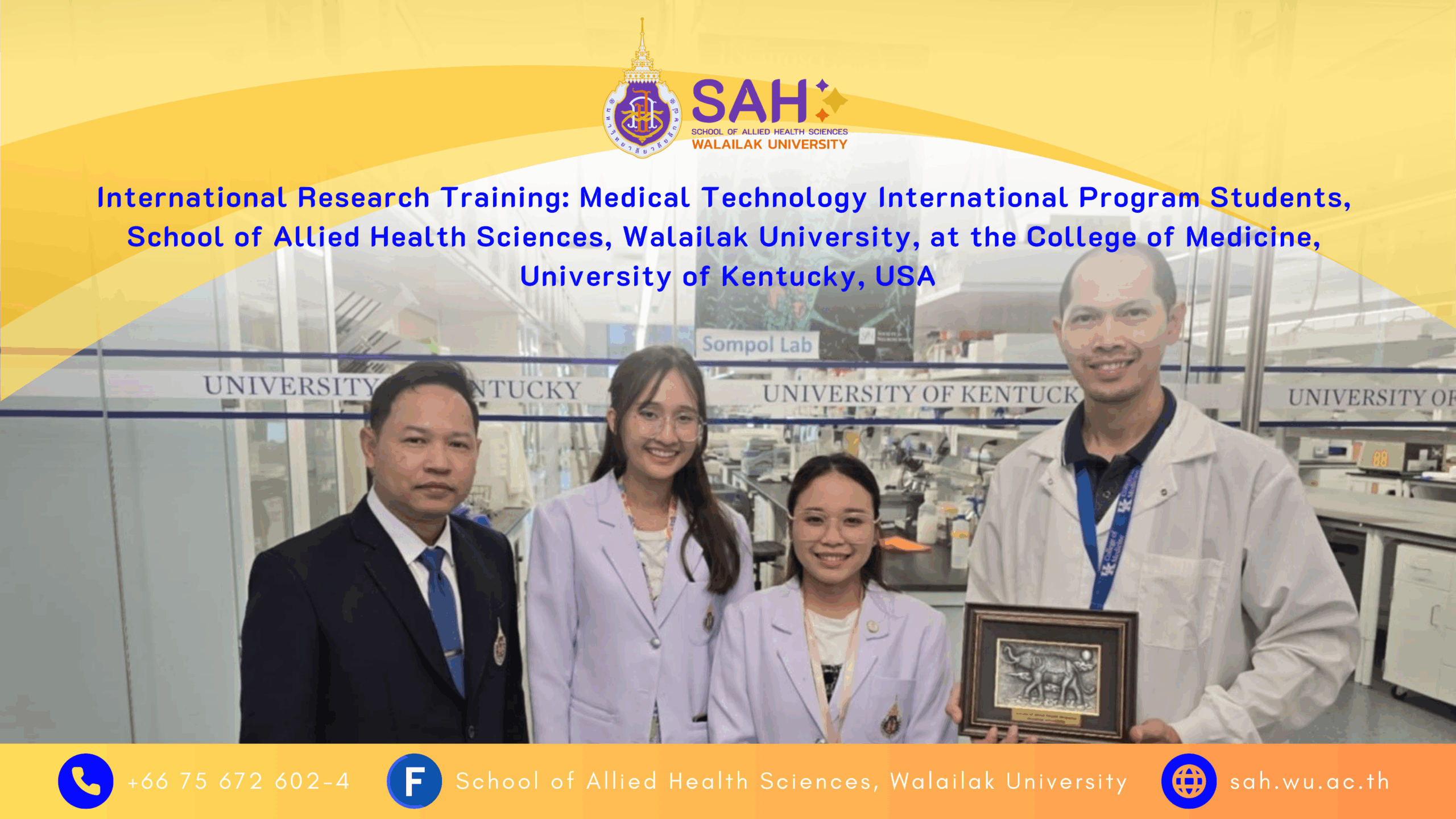 International Research Training: Medical Technology International Program Students, School of Allied Health Sciences, Walailak University, at the College of Medicine, University of Kentucky, USA Read More » 20/08/2025 08:33