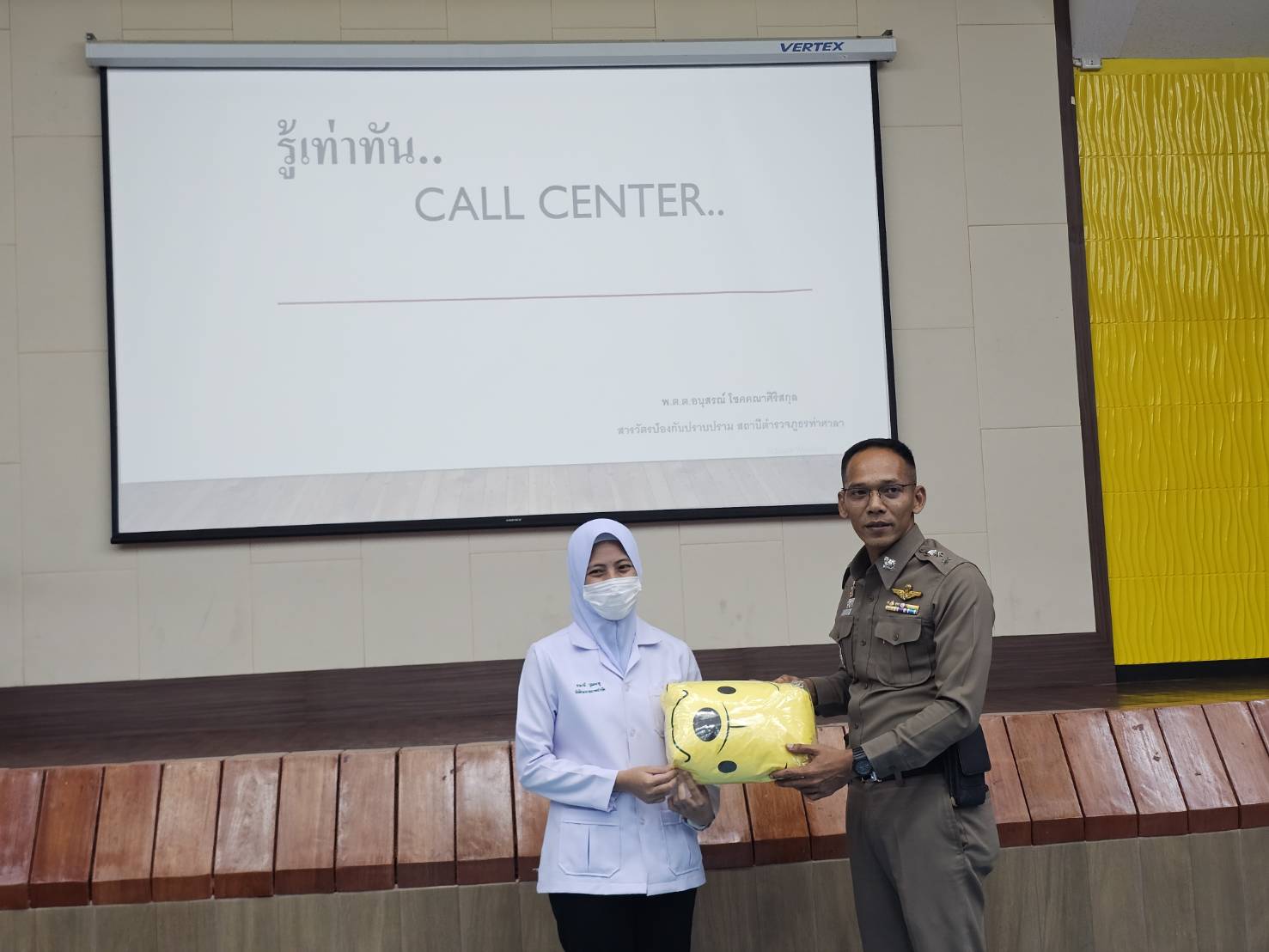และได้รับเกียรติจาก พ.ต.อ.อภิชาต จันทร์สำเร็จ ผู้กำกับการสถานีตำรวจภูธรท่าศาลา และ พ.ต.ต. อนุสรณ์ โชคคณาศิริสกุล สารวัตรป้องกันปราบปราม สถานีตำรวจภูธรท่าศาลา ให้ความรู้เกี่ยวกับ การรู้เท่าทัน call center