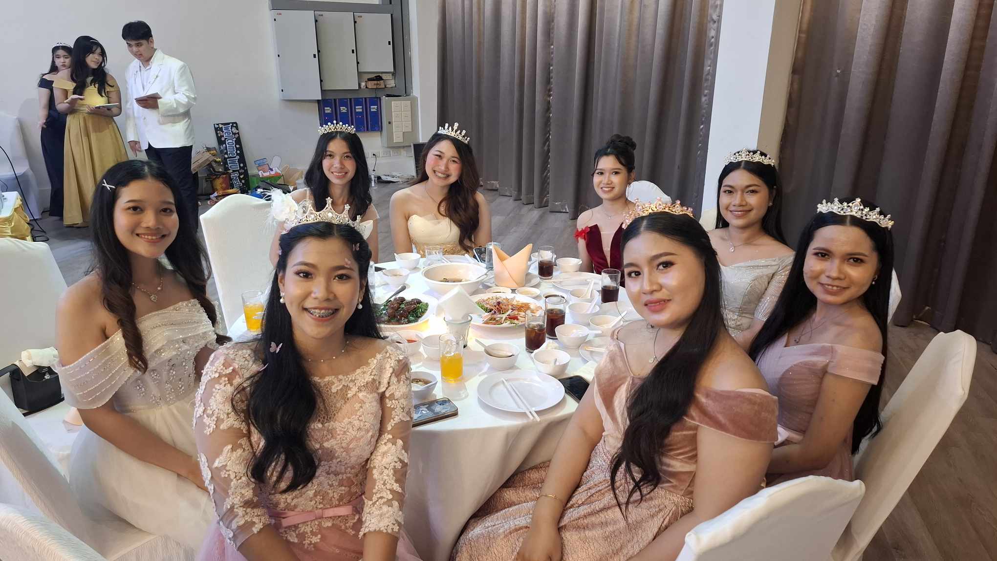 บรรยากาศภายในงานเต็มไปด้วยความอบอุ่นและรอยยิ้มจากคณาจารย์ เจ้าหน้าที่ และนักศึกษารุ่นน้องที่มาร่วมแสดงความยินดี ภายใต้ธีม “เจ้าหญิงและเจ้าชาย” ที่น่ารักสดใส ทุกมุมของงานถูกแต่งแต้มด้วยความตั้งใจที่ช่วยเติมเต็มให้เป็นค่ำคืนที่น่าประทับใจ