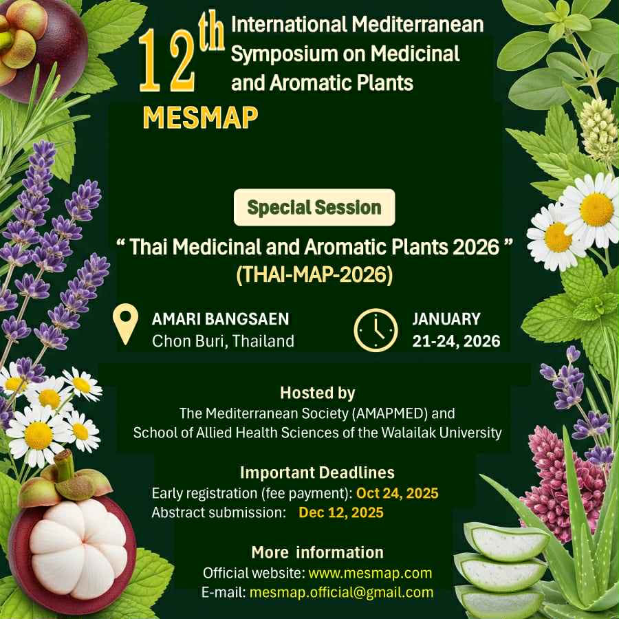 ขอเชิญร่วมงาน 12th International Mediterranean Symposium on Medicinal and Aromatic Plants (MESMAP-2026) ระหว่างวันที่ 21-24 มกราคม 2569