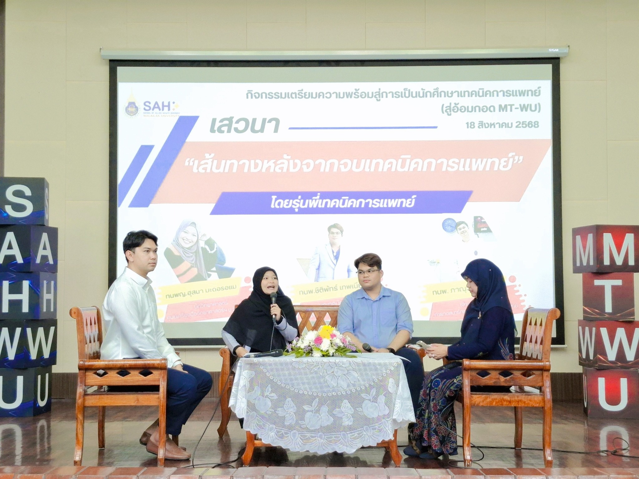 หลักสูตรเทคนิคการแพทย์ สำนักวิชาสหเวชศาสตร์ มหาวิทยาลัยวลัยลักษณ์ จัดกิจกรรม “เตรียมความพร้อมสู่การเป็นนักศึกษาเทคนิคการแพทย์ (สู่อ้อมกอด MT-WU)”