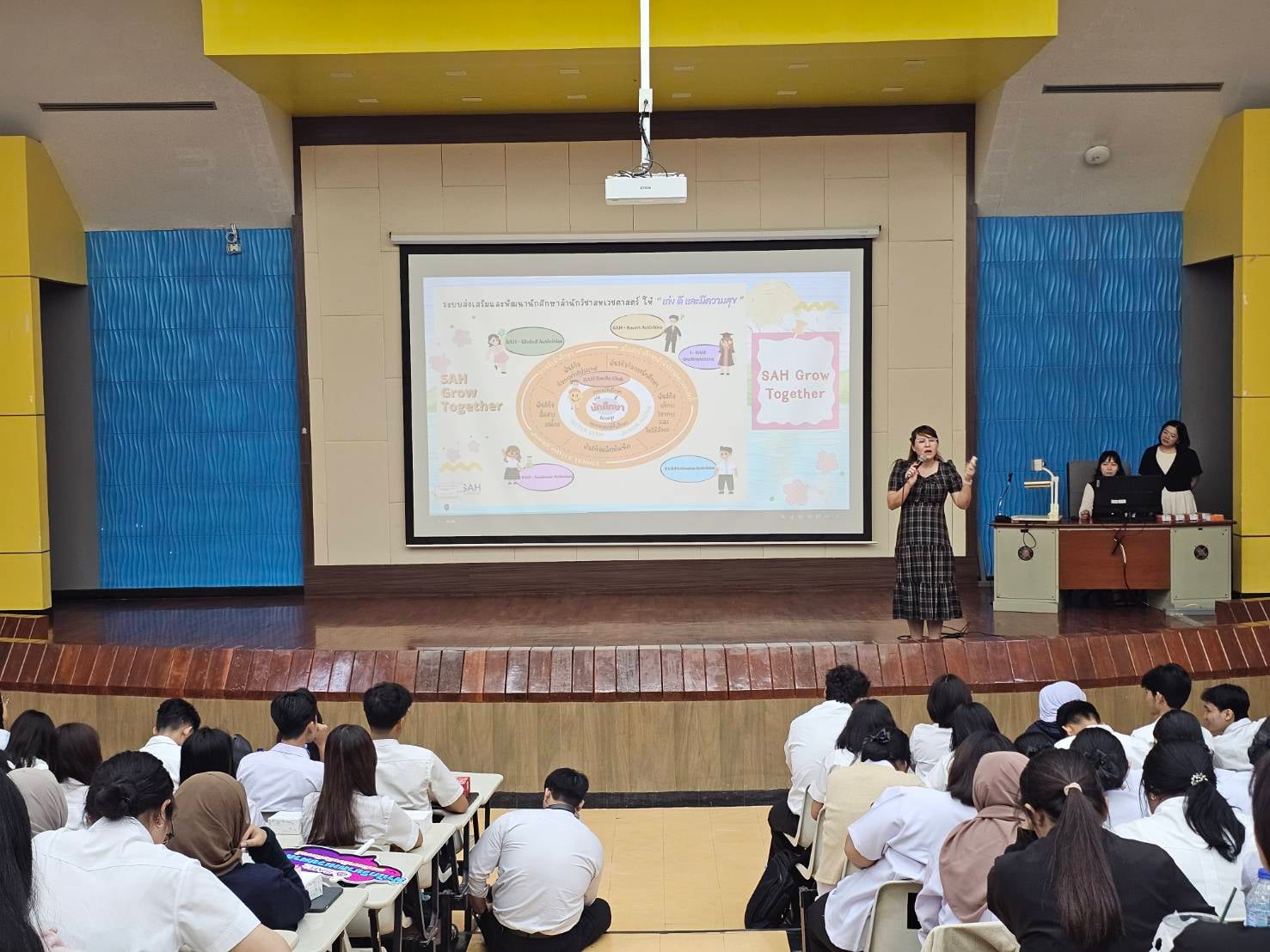โดยได้รับเกียรติจาก ผู้ช่วยศาสตราจารย์ ดร.สลิลา เศรษฐไกรกุล หัวหน้าสาขาวิชากายภาพบำบัด กล่าวต้อนรับและให้โอวาทนักศึกษากายภาพบำบัด ซึ่งมีกิจรรมประกอบด้วย การฟังบรรยาย “รู้ทันมิจฉาชีพันธุ์ใหม่และห่างไกลอุบัติเหตุ โดย คุณโอม สุขปลอด และคุณสุริยันต์ ถึงแสง จากศูนย์ส่งเสริมและพัฒนานักศึกษา แผนการศึกษาและPLOs&YLOs โดย ผู้ช่วยศาสตราจารย์ ดร.จารุภา เลขทิพย์ ประธานหลักสูตรกายภาพบำบัด แนวปฏิบัติของนักศึกษากายภาพบำบัด โดย อาจารย์ ดร.สุมาตรา สังข์เกื้อ หัวหน้าโครงการ การเก็บคะแนน passport คนดี โดย ผู้ช่วยศาสตราจารย์ ดร.อโนมา สันติวรกุล รองคณบดีฝ่ายส่งเสริมและพัฒนานักศึกษา สำนักวิชาสหเวชศาสตร์ และกิจกรรมพบอาจารย์ที่ปรึกษา