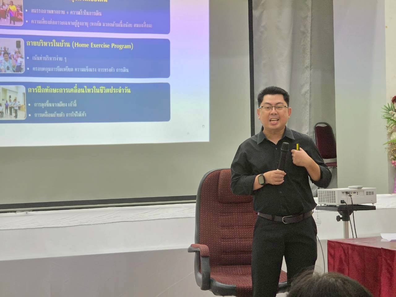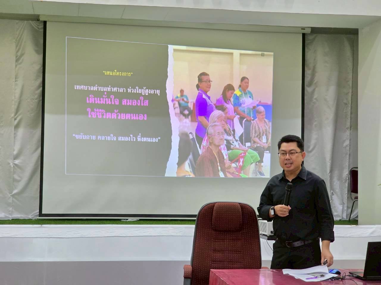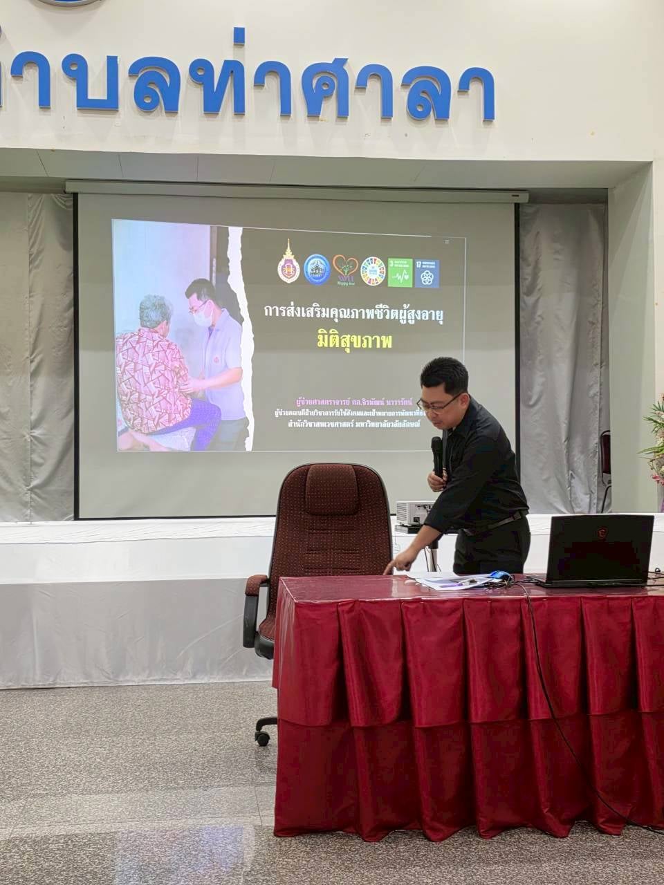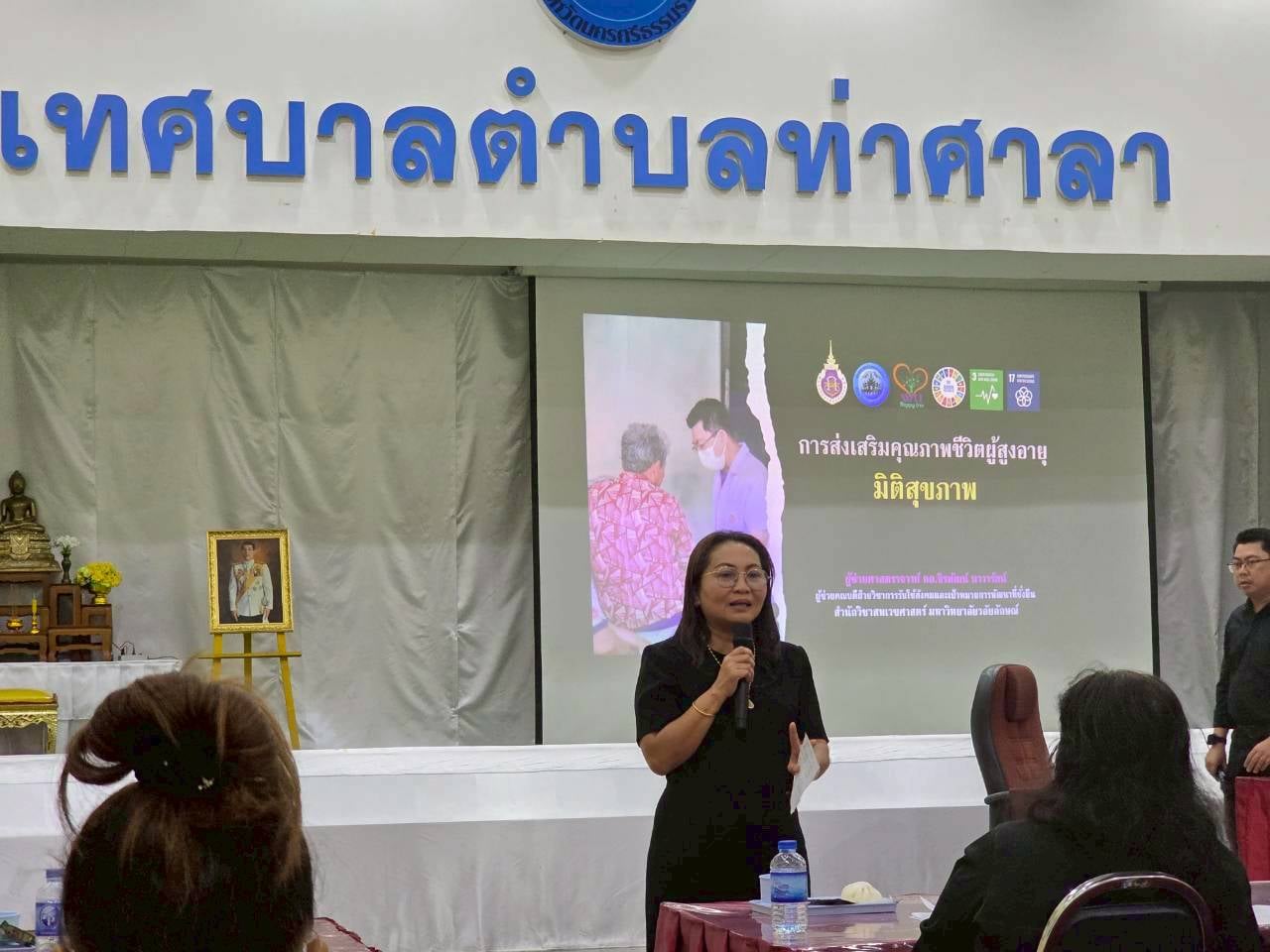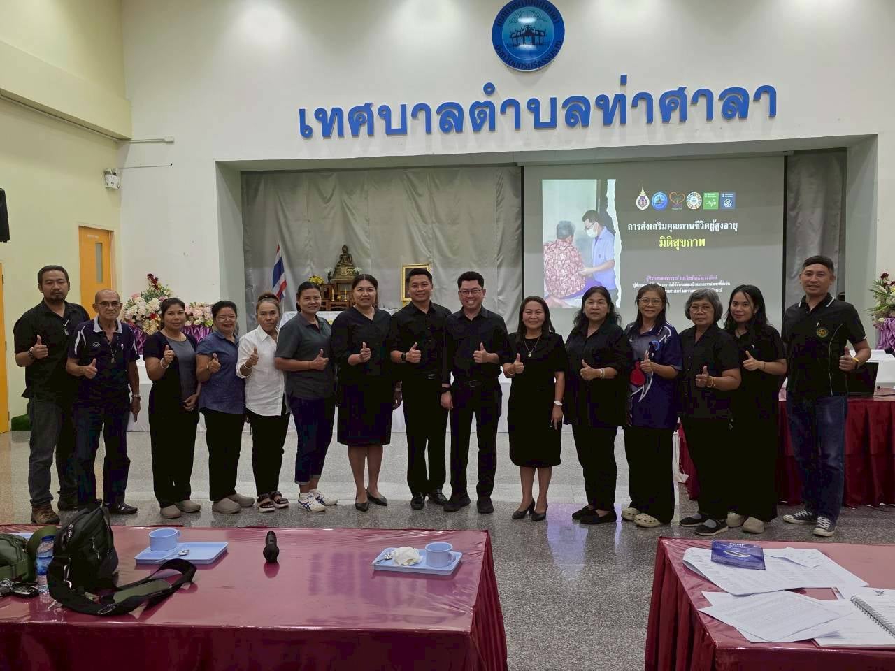 และเมื่อวันที่ 11 พฤศจิกายน 2568 ที่ผ่านมา ผู้ช่วยคณบดีฯ ได้นำเสนอแนวทางการส่งเสริมคุณภาพชีวิตผู้สูงอายุในมิติด้านสุขภาพ รวมถึงเสนอกิจกรรมเยี่ยมบ้านผู้สูงอายุต่อที่ประชุมคณะทำงานของโครงการฯ โดยมีนางสาวสัญสนีย์ เศรษฐ์รชตะ รองนายกเทศมนตรี เป็นประธานในการประชุม โดยปีนี้ทางสำนักวิชาสหเวชศาสตร์จะเข้ามามีส่วนร่วมกับท้องถิ่น เพื่อยกระดับการเยี่ยมบ้านผู้สูงอายุให้เกิดประสิทธิผลมากขึ้นภายใต้ธีม “เดินมั่นใจ สมองใส ใช้ชีวิตด้วยตนเอง” ครอบคลุมผู้สูงอายุกลุ่มติดบ้านทั้ง 6 ชุมชนของเทศบาลตำบลท่าศาลา ประกอบด้วย ชุมชนศาลาน้ำ ชุมชนสามัญ ชุมชนตลาดสด ชุมชนปทุมา ชุมชนหน้าอำเภอ และชุมชนเสนาราม