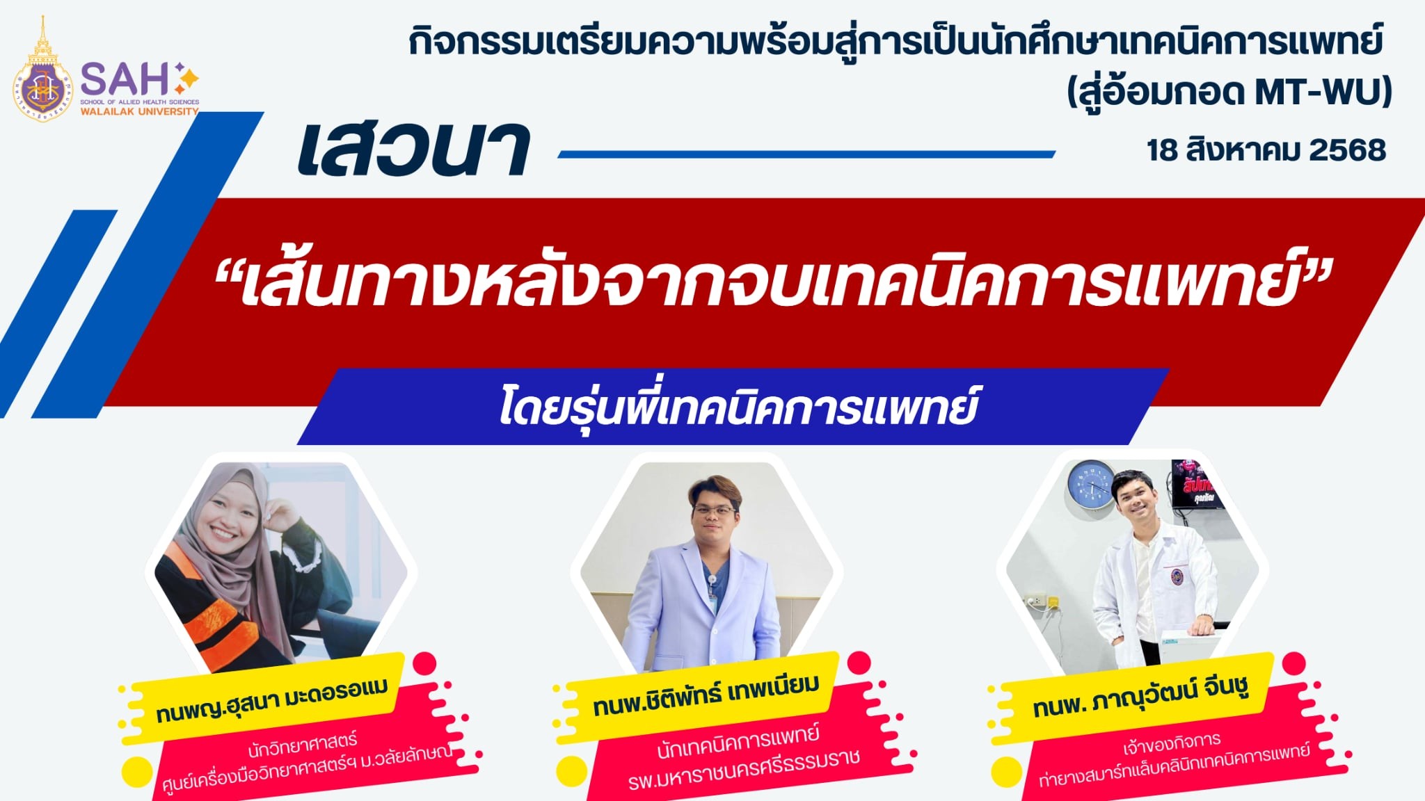 กิจกรรม Meet & Med : สายสัมพันธ์เทคนิคการแพทย์ มหาวิทยาลัยวลัยลักษณ์ พบนักศึกษาชั้นปีที่ 2 ถึงชั้นปีที่ 4 Read More » 23/06/2025 10:33