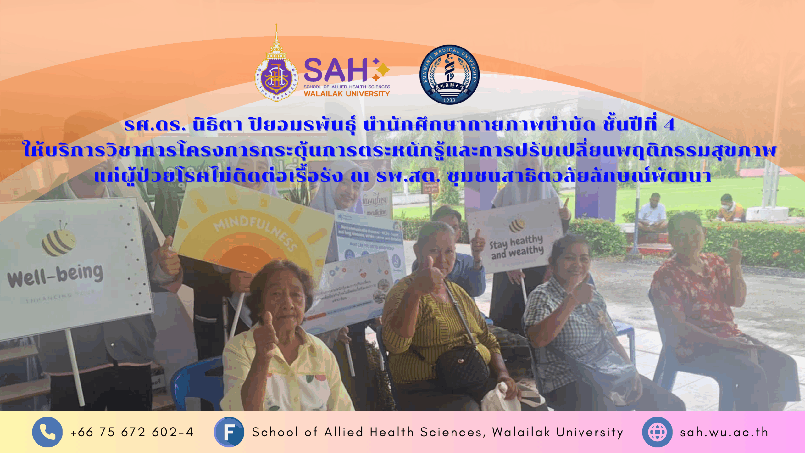 โครงการ Global Multiprofessional and Cultural Camp 2023 SHOWA University, Japan and Walailak University, Thailand (7-12 Aug 2023) Read More » 12/08/2023 16:03